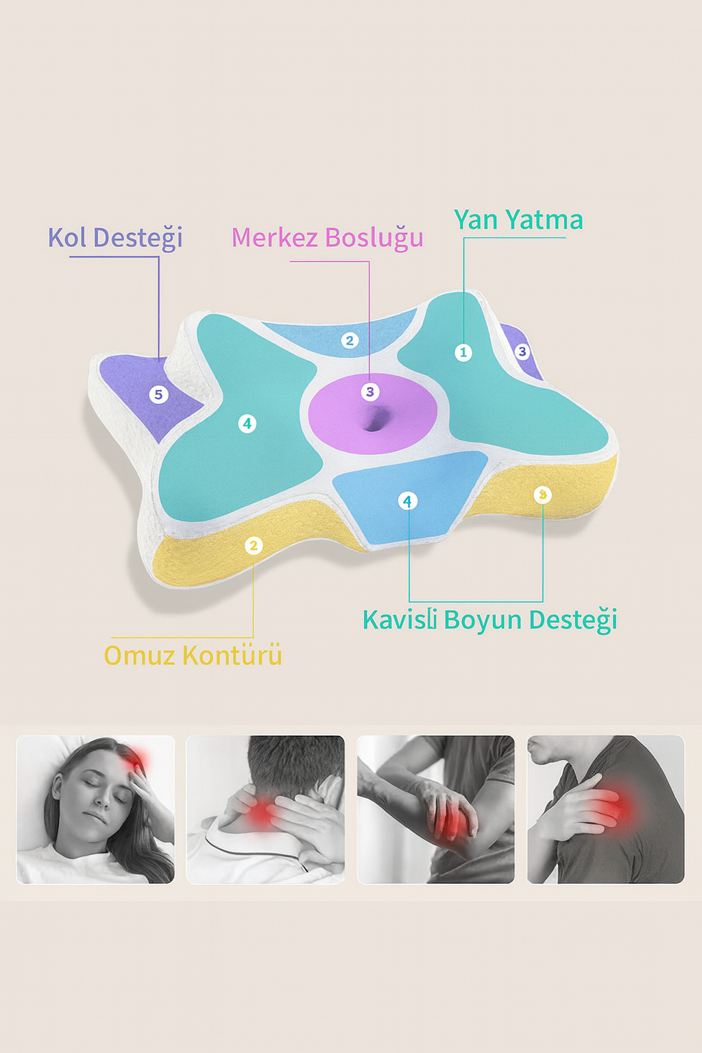 Baş ve boyun basıncını eşit dağıtarak ağrıyı azaltır.