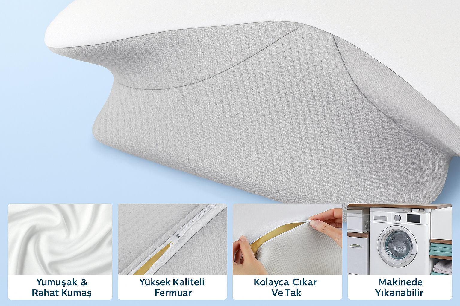 Baş–boyun hizasını korumaya yardımcı kontur formu; daha rahat sabahlar için stabil destek.
